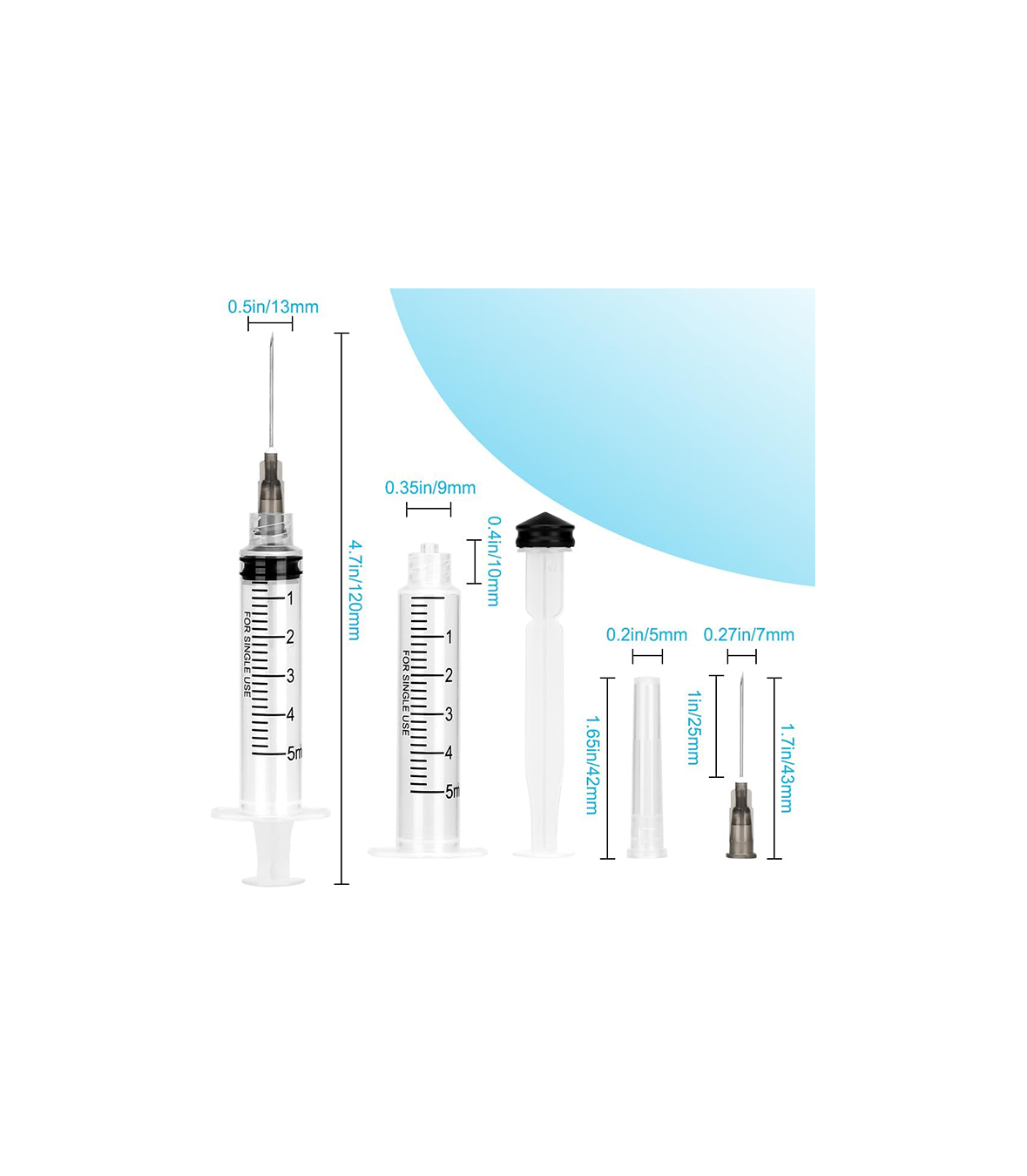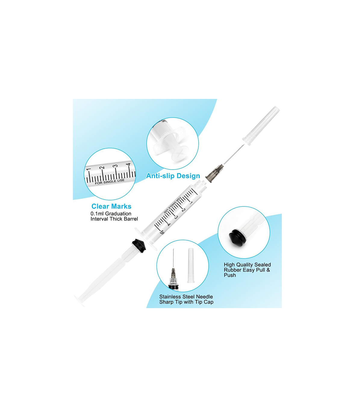 💉 5ml Capacity with 22G 1” Needle: Ideal for precise fluid handling, injections, extractions, and other controlled applications.