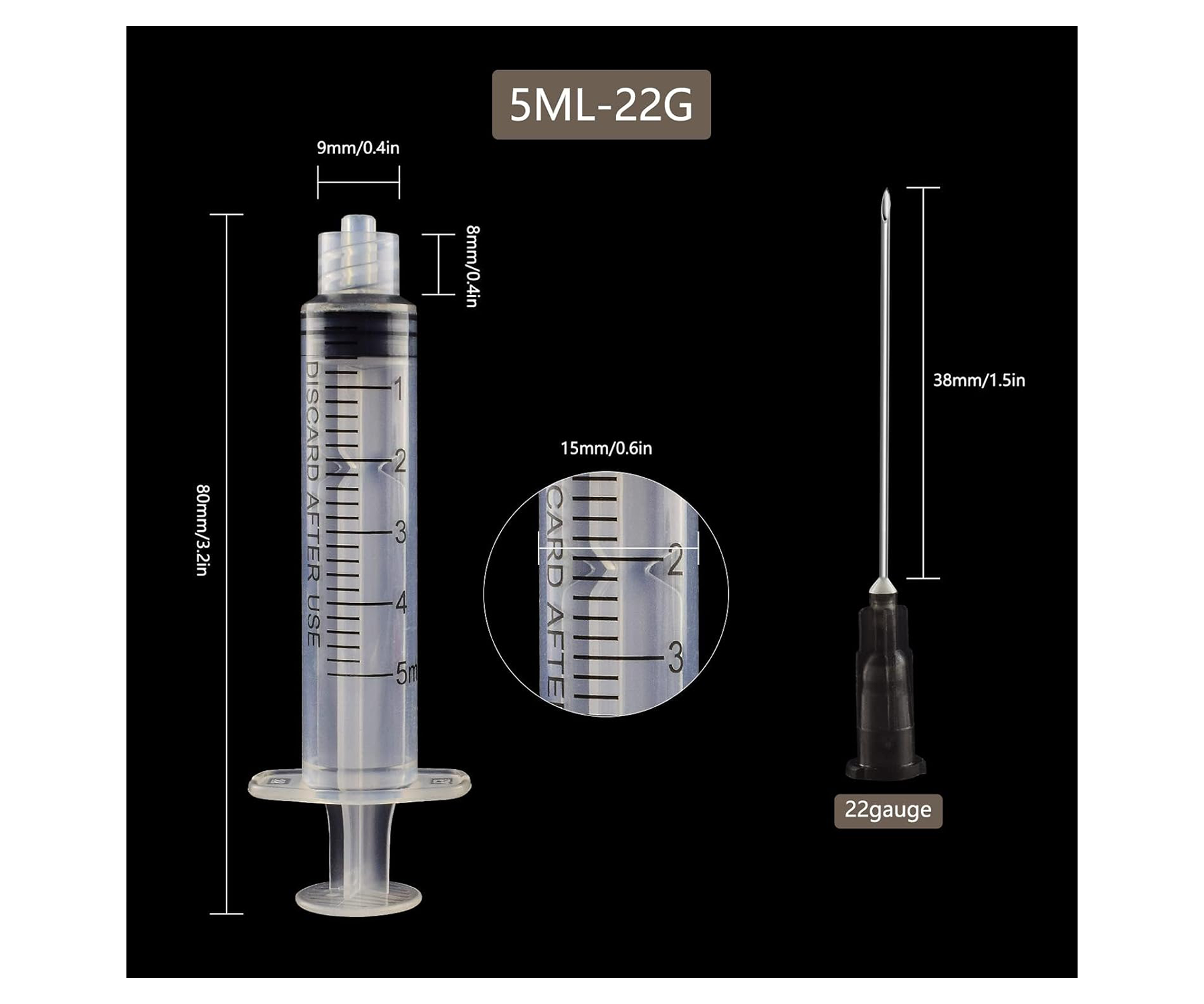 Designed for precision and versatility, these 5ml disposable syringes with 22 gauge 1-inch needles are ideal for a wide range of scientific, industrial, and laboratory applications. Whether you're measuring and dispensing liquids or conducting controlled experiments, these syringes provide reliable performance and ease of use.
