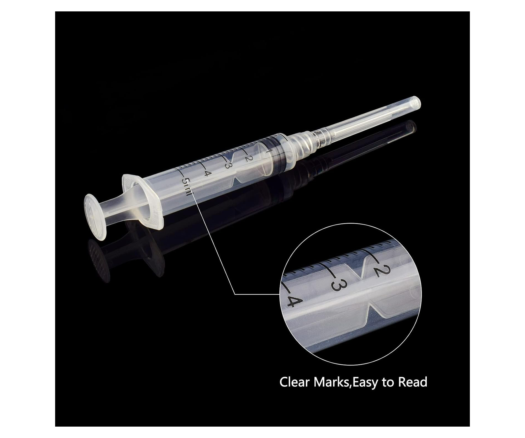 5ml Disposable Syringes with 22 Ga 1 Inch Needle, for Scientific Labs, Industrial, Liquid Measuring, Dispensing, Pack of 20
