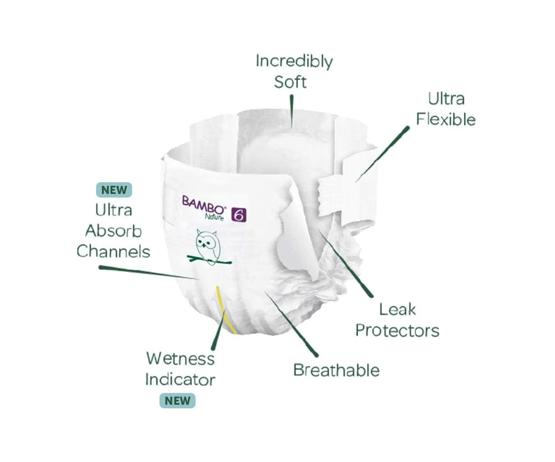 Perfect for eco-conscious parents who want top-tier performance and gentle care, Bambo Nature Eco Nappies are a sustainable choice you can trust.