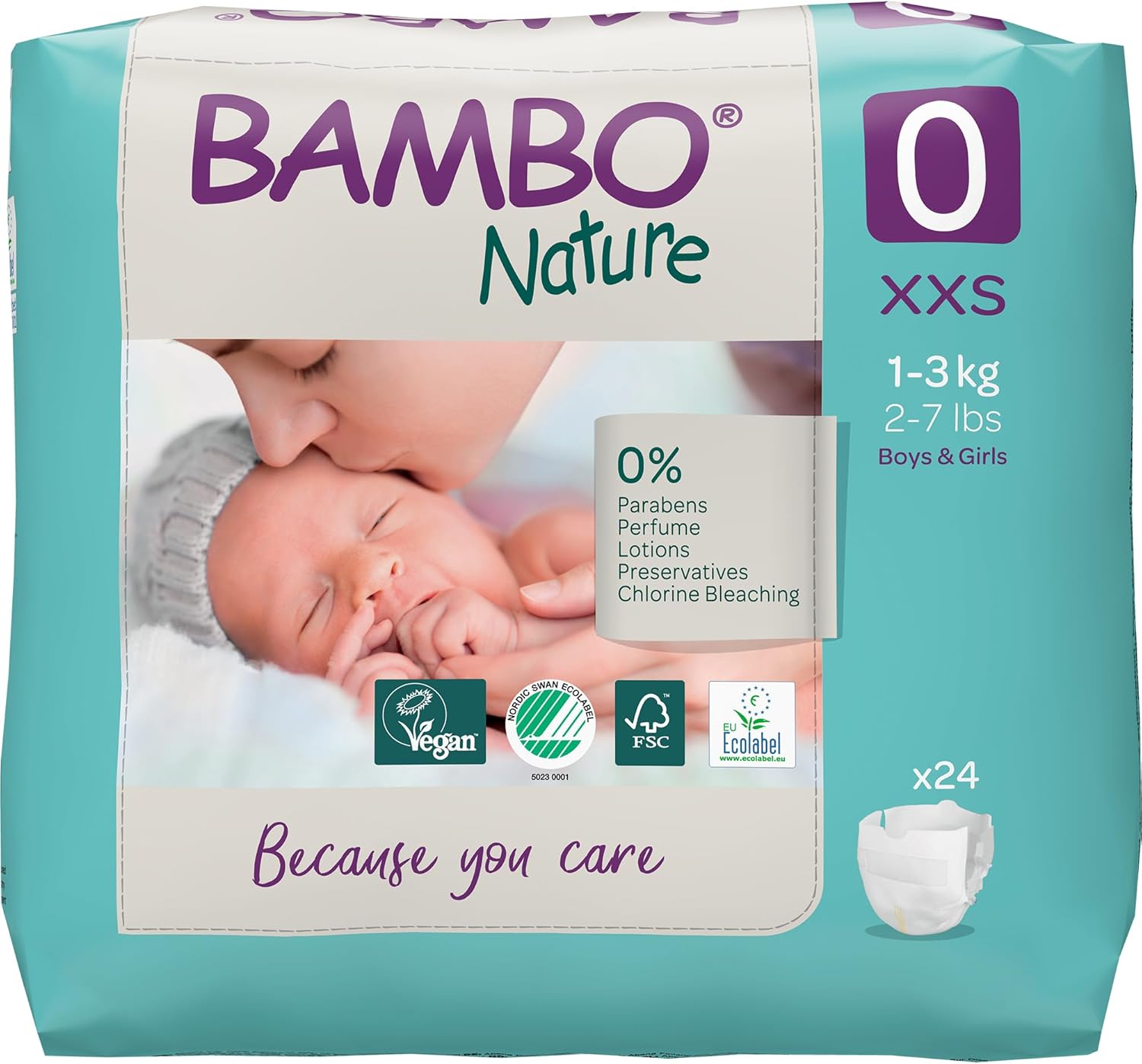 Size 0 Premium Eco Nappies, Premature (2-7lb/1-3kg) Pack of 24, XXS