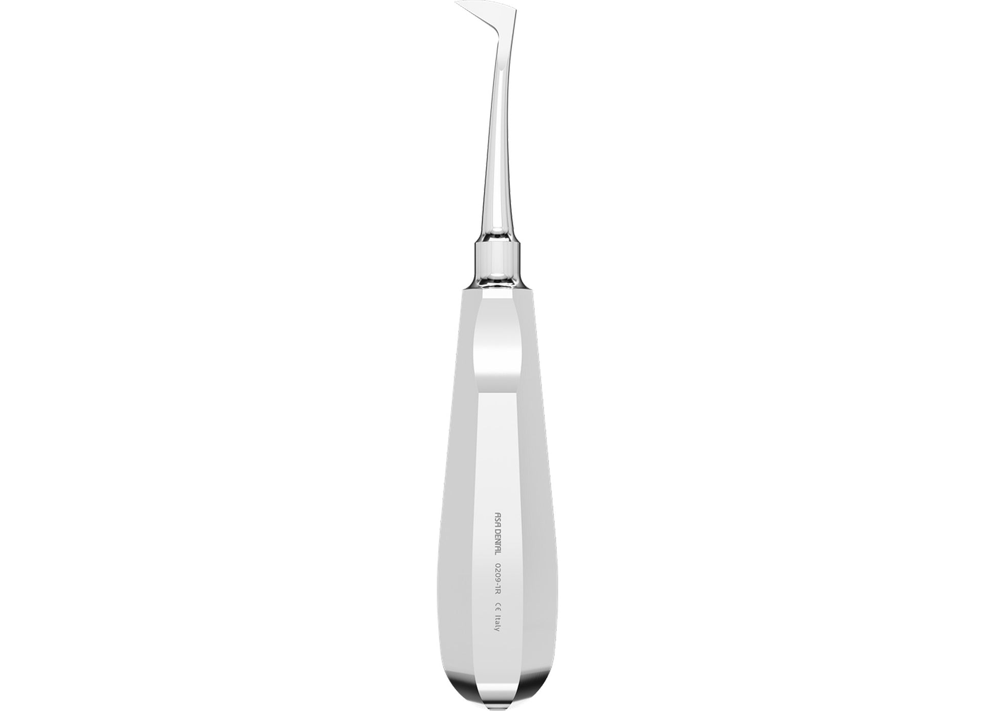The Seldin Fig. 1R Root Elevator is a specialized dental instrument designed for atraumatic tooth extraction. It features a sturdy, ergonomic handle for a comfortable grip and a right-angled, slightly curved blade for effective engagement with the periodontal ligament and root structure. The Fig. 1R variation is specifically designed for use on the right side of the dental arch, aiding in the elevation and loosening of roots and teeth before extraction. Crafted from high-quality stainless steel, it ensures durability, precision, and easy sterilization, making it an essential tool for oral surgeons and dental professionals