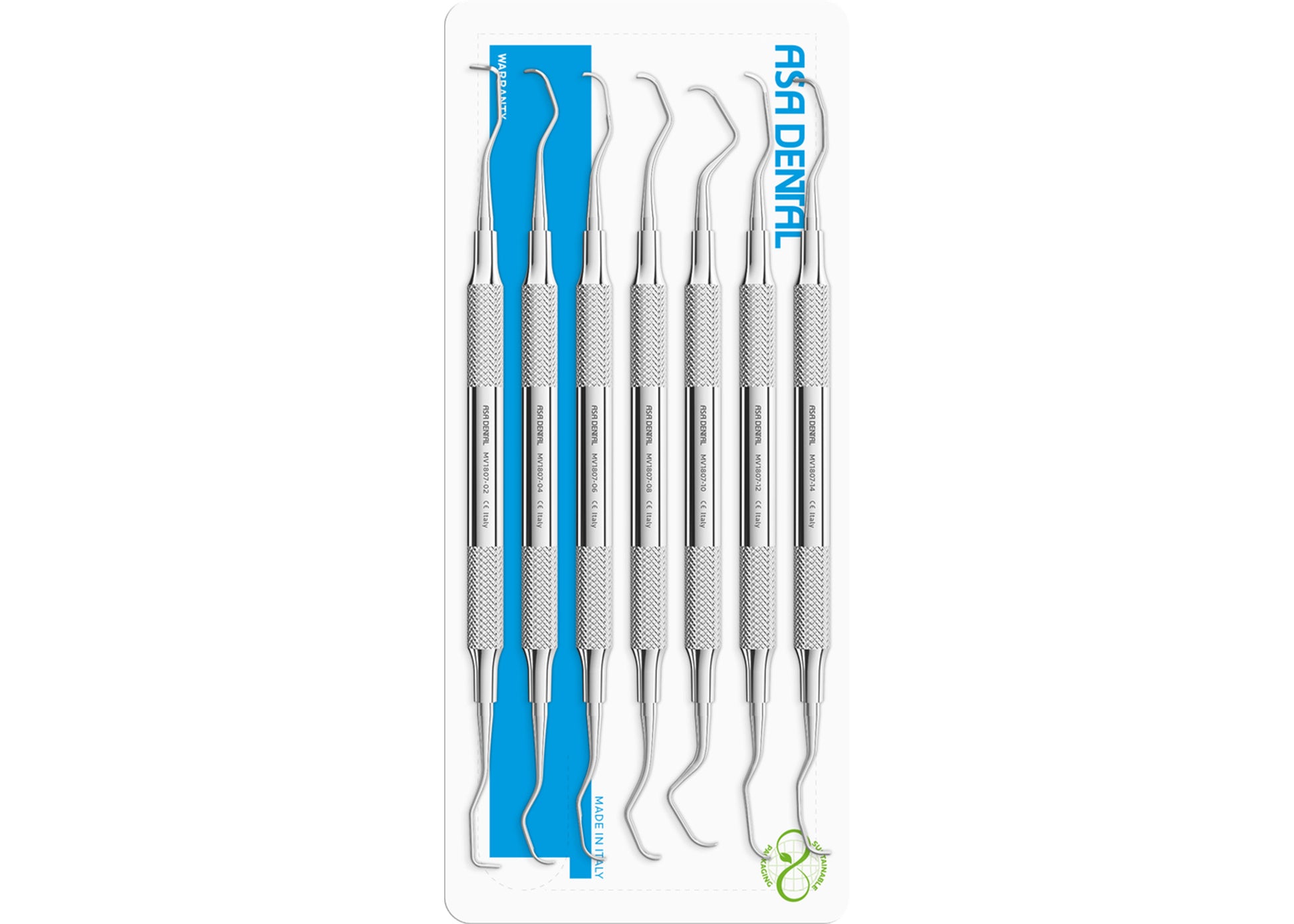 Set of 7 – Includes a range of curettes for comprehensive periodontal treatment, covering different tooth surfaces and anatomical variations.