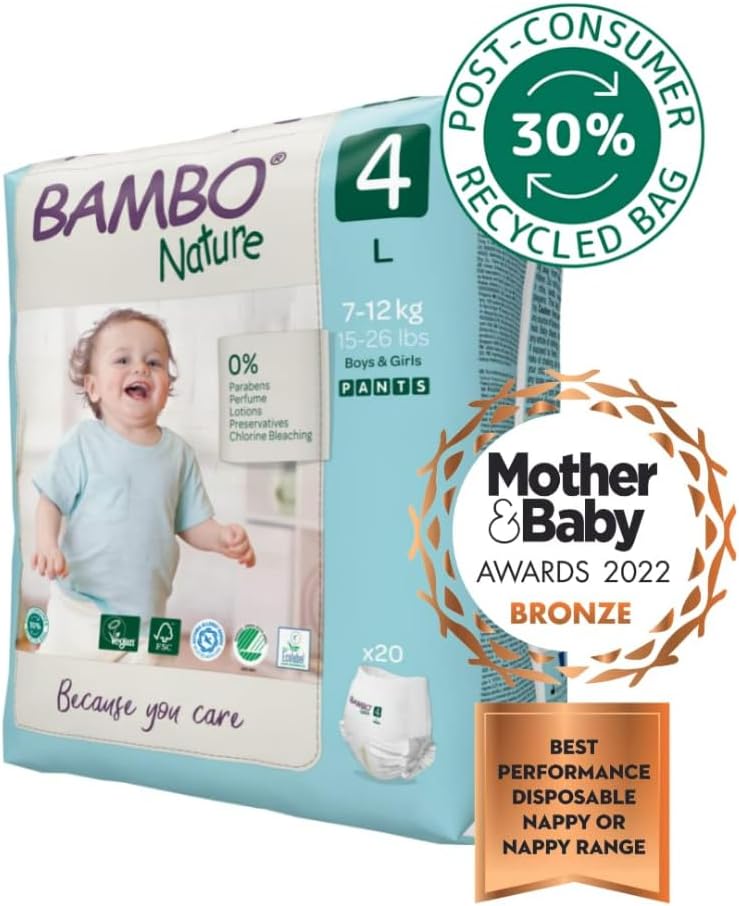 Size 4 / L Premium Training Pants, Pull Ups, Eco-Labelled Potty Training Pants, Training Nappy Pants, Secure & Comfortable, Discreet Pants For Active Day & Comfy Night's Sleep - 20PK