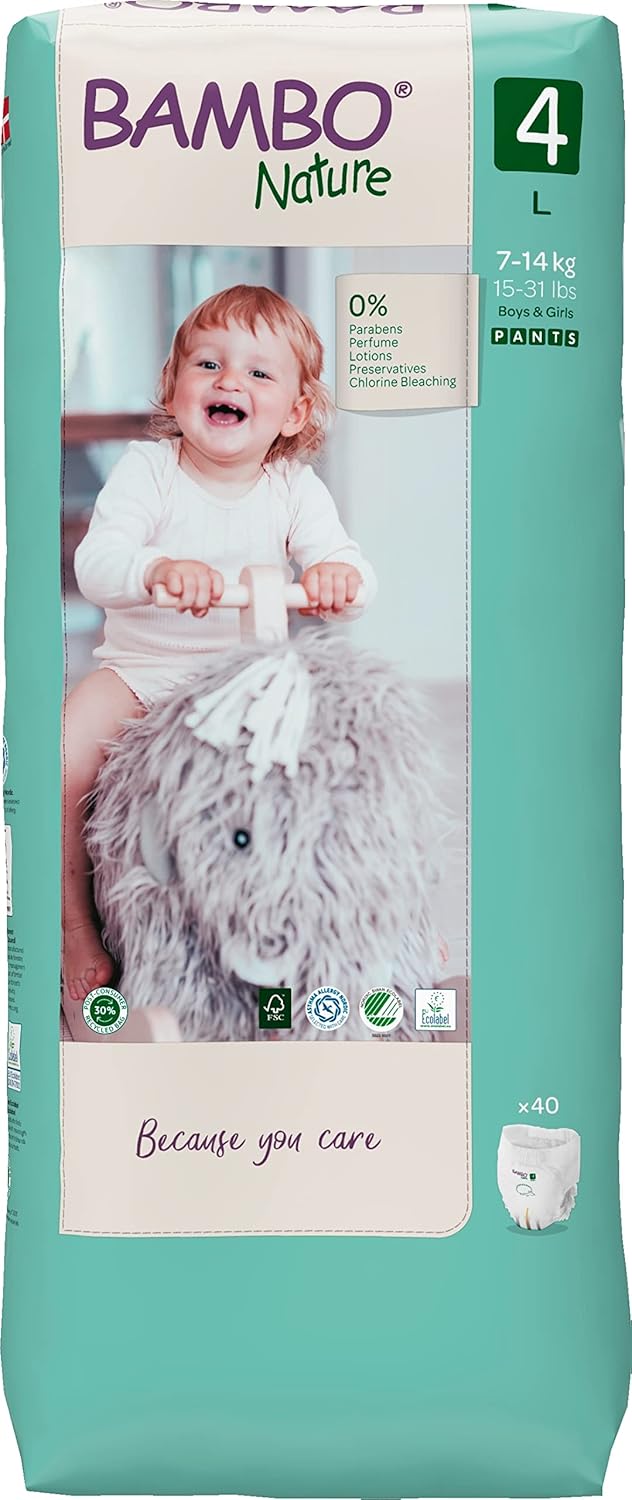 Size 4 Maxi Pack Premium Eco Nappy Pull-Up Pants, (15-31lb/7-14kg) Tall PAC of 40