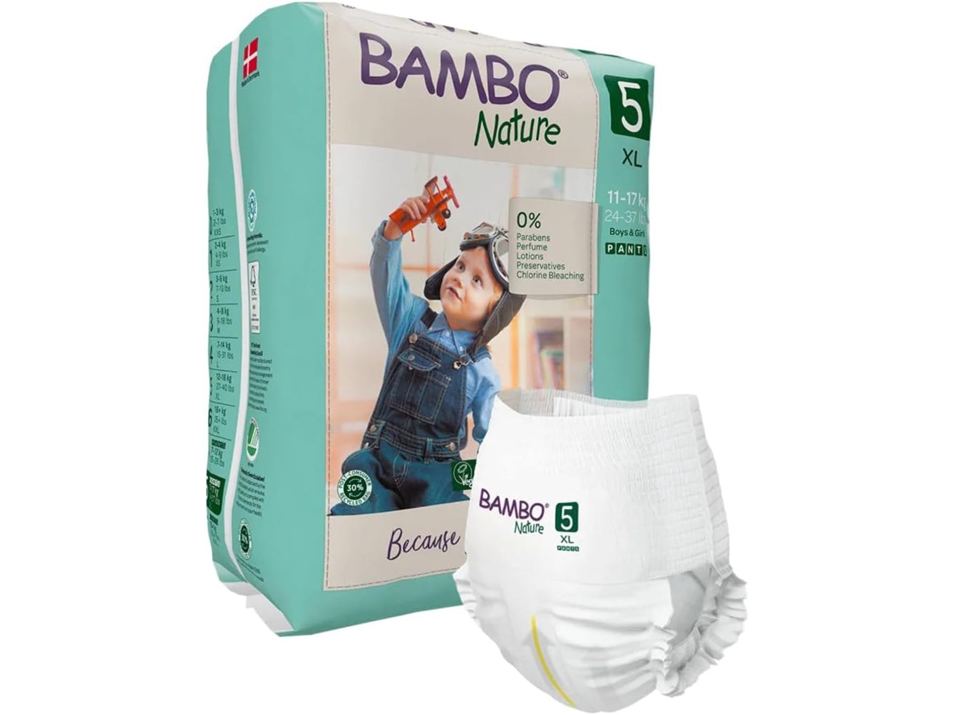 Is your child ready to start potty training? Bambo Nature Disposable pants can help your child make a comfortable transition from baby nappies to no nappies at their own pace. The pants are thin and easy for little hands to pull up and down, even when they're in a hurry. Pull them on and off just like usual underwear. Bambo Nature Disposable nappies are soft, comfortable, and keep even the most sensitive skin dry. The Nordic Ecolabel guarantees you a nappy free of harmful chemicals, colours, chlorine, perfume, and all known allergens. A unique three-layer design and super-absorbent core hold up to multiple wettings-even overnight. The convenient wetness indicator changes colour and makes it easy to see when a change is needed.